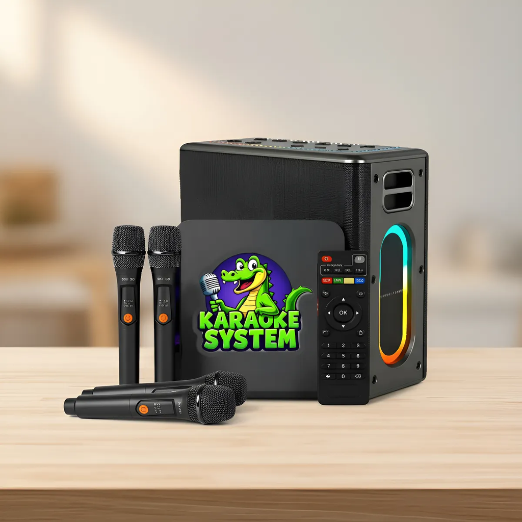 TVKaraoke Box - Aparelho de Karaoke Android com Pontuação Real - Contendo 18.000 músicas karaoke na memória + 2 Microfones Sem Fio e Caixa de Som 120W