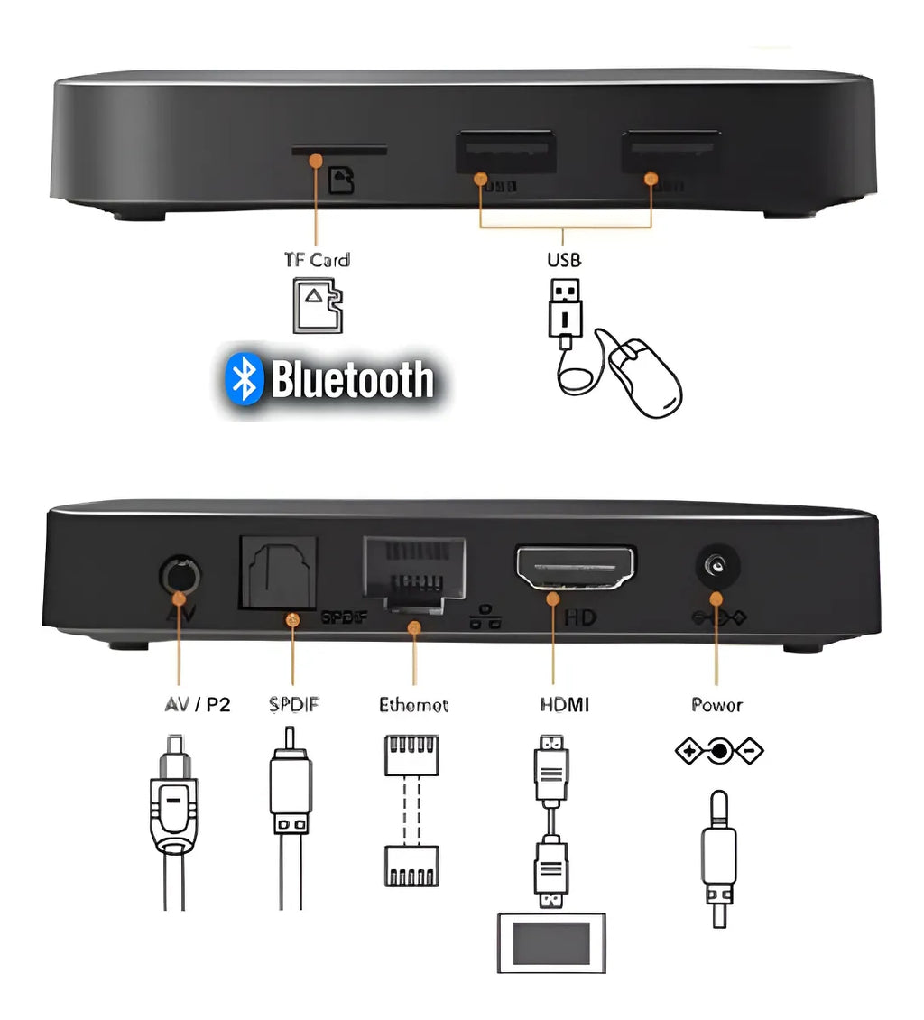 Itens inclusos: Aparelho TVKaraoke Box; cartão de memória 128 gigabytes; fonte de energia; controle remoto; 2 pilhas AAA; cabo HDMI; 1 Microfone Sem Fio que também funciona como Caixa de Som, 5w de potência.